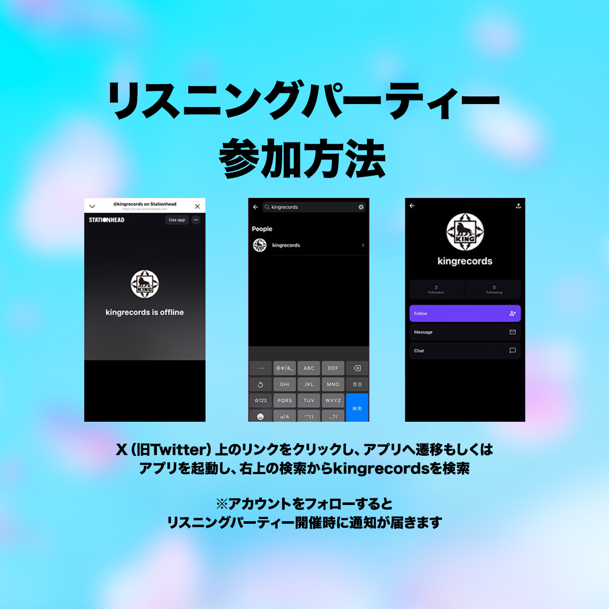 ★kingrecordsアカウントを事前にフォローいただくとリスニングパーティー開催時に通知が届きます。